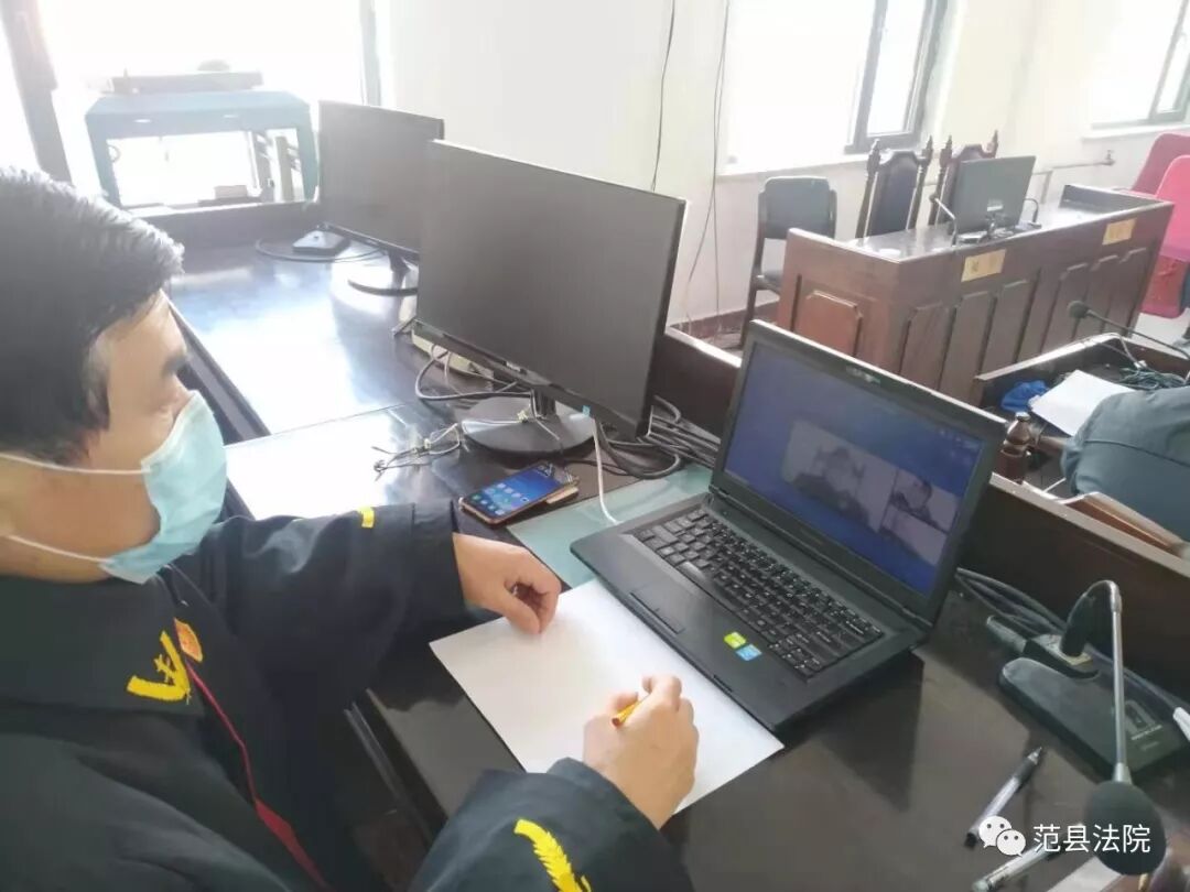 城镇法庭实现网上开庭。整个庭审过程,审判员与书记员全程佩戴口罩,庭审视频清晰,井然有序。庭审结束后当事人在网上签署了庭审笔录。