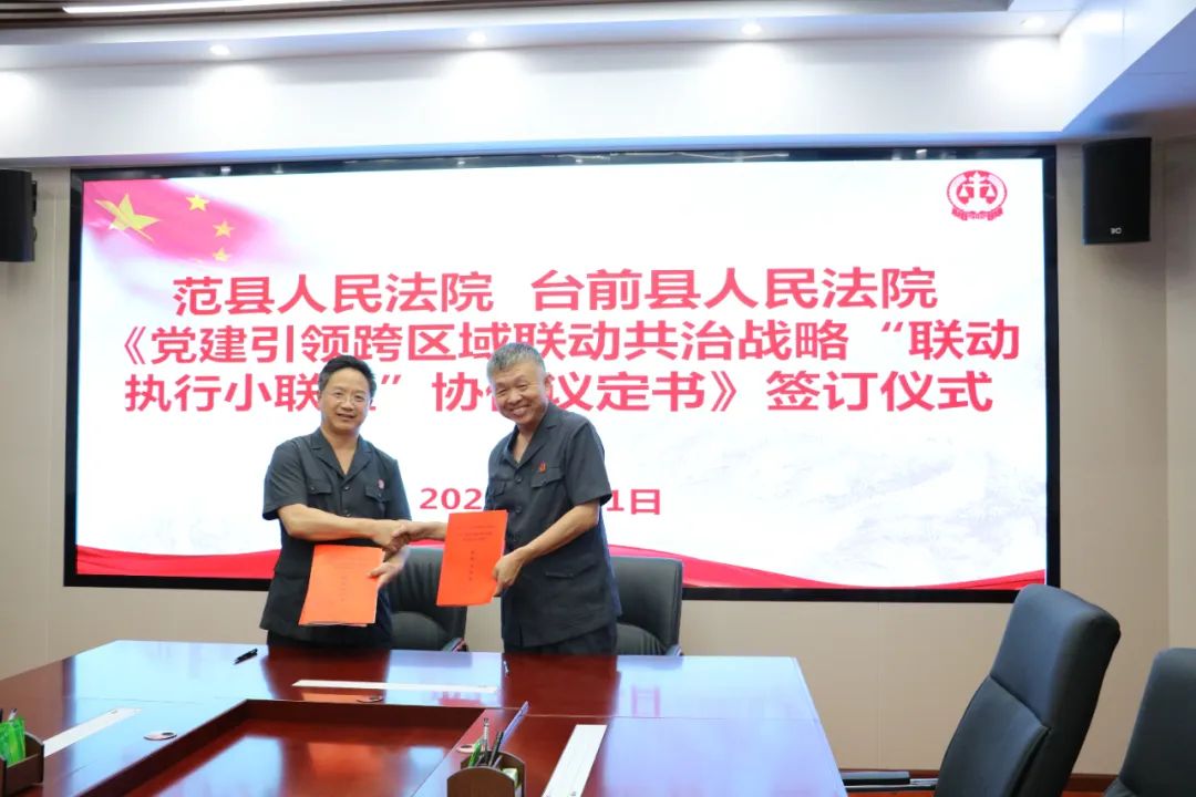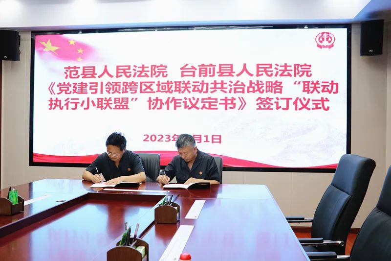 范县人民法院与台前人民法院充分利用辖区毗邻优势,签订联动协议,进一步加强执行工作信息共享,强化异地执行统一协调指挥,完善跨区域执行联动协调配合,实现异地法院办案的“同城效应”,全面促进执行工作一体化协同发展,有效推动解决异地执行因成本高、效率低、周期长等问题影响执行工作质效的弊端,提升执行工作质效,构建执行工作跨区域联动大格局。