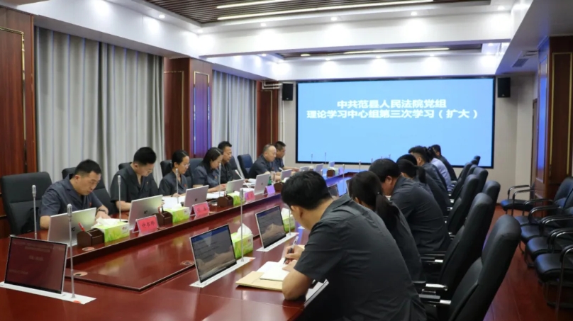 5月23日下午,范县人民法院理论学习中心组(扩大)举行集体学习研讨会,会议传达了习近平总书记在河南考察时的重要讲话精神,集中学习了中央八项规定及其实施细则、《党政机关厉行节约反对浪费条例》、《党政机关国内公务接待管理规定》等规定。范县人民法院党组书记、院长董会平主持会议并讲话,参会人员分别作交流发言,院党组成员、专委、中层正职干部参加学习。