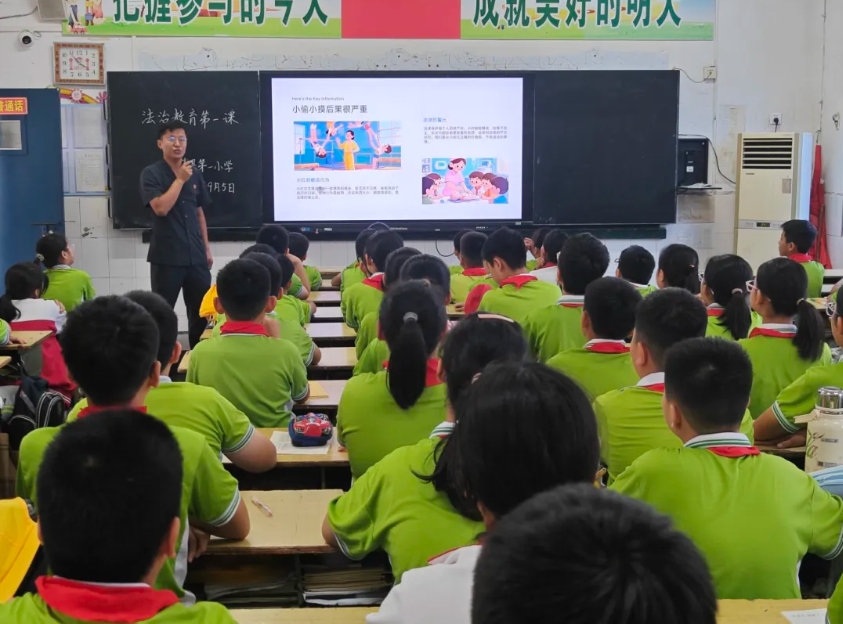 金秋九月,丹桂初绽。9月5日下午,范县第一小学六年级七班的课堂内格外热闹——一场别开生面的“开学第一课”正在这里进行。与以往不同的是,讲台上的“老师”身着法院制服、胸佩法徽,是来自范县人民法院的法官申才勇。作为该校的法治副校长,他以“法律是什么?——做遵纪守法的小公民”为主题,用一场“有温度、有故事、有互动”的法治课,为该班师生揭开了法律的神秘面纱。
