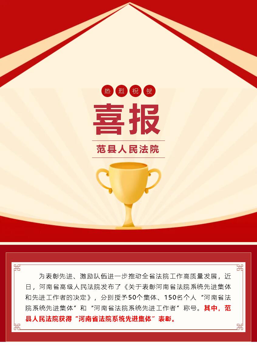 喜报!范县人民法院获全省表彰!