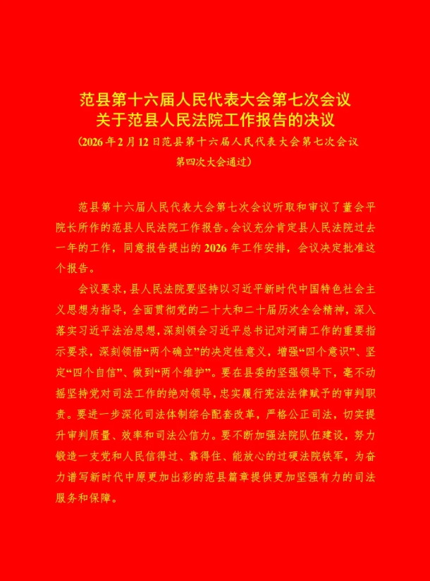 范县第十六届人民代表大会第七次会议关于范县人民法院工作报告的决议