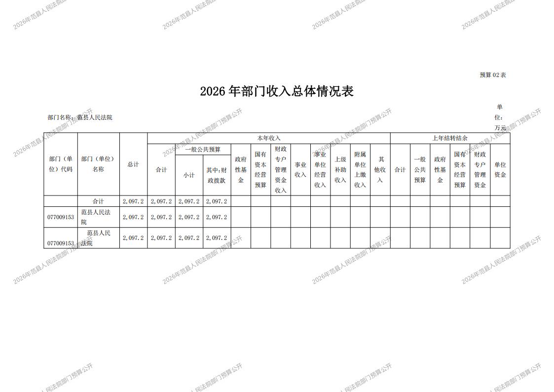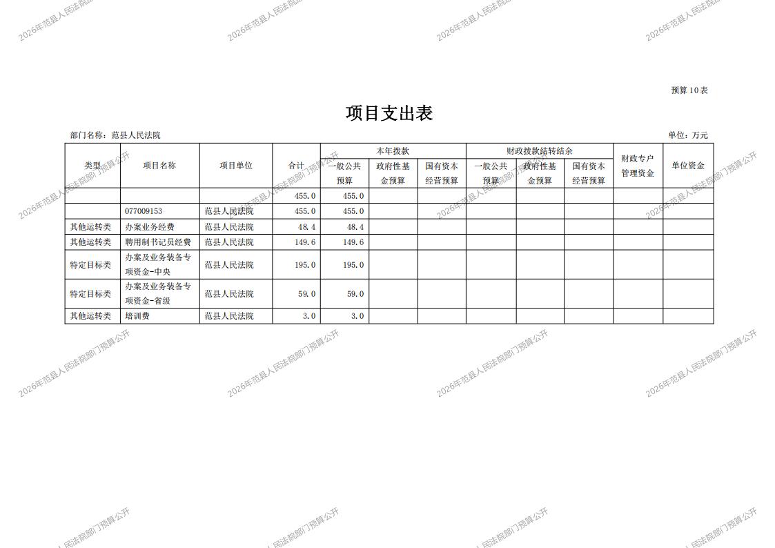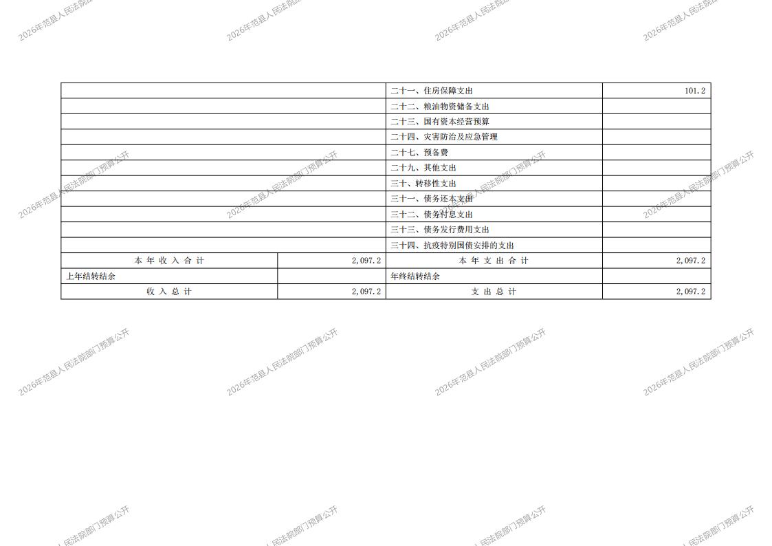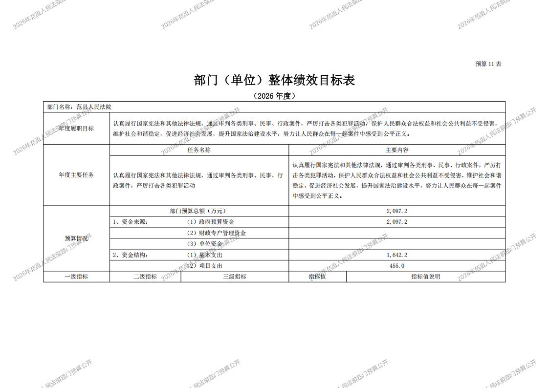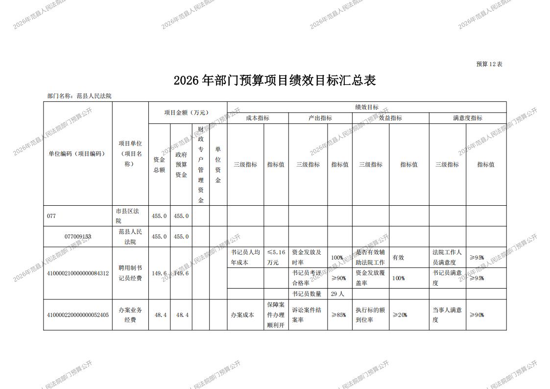 2026年范县人民法院部门预算公开