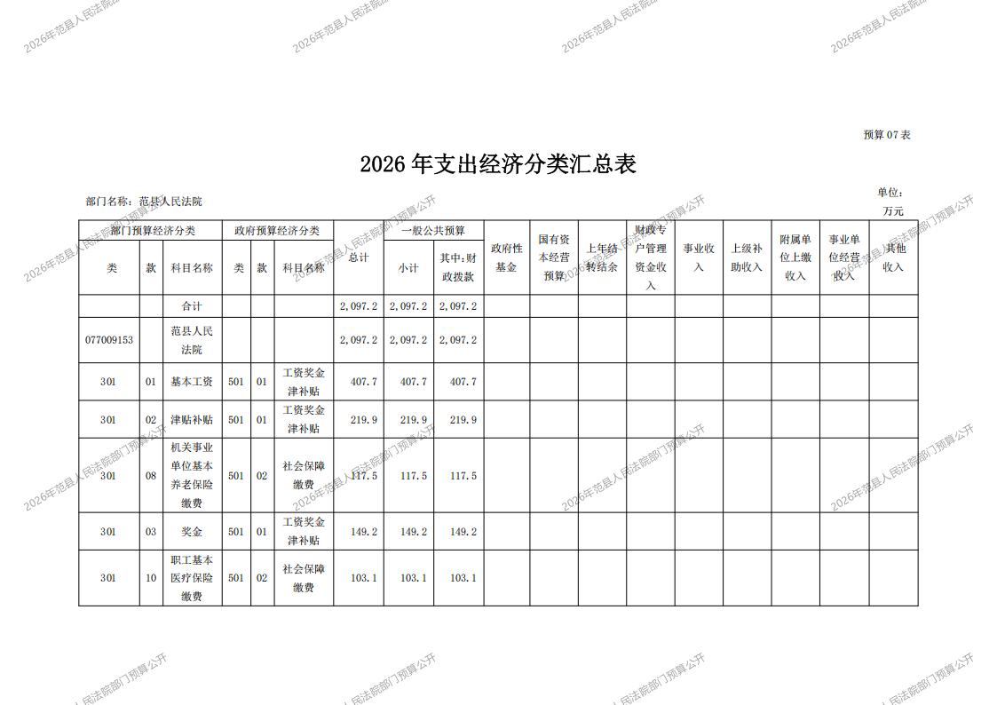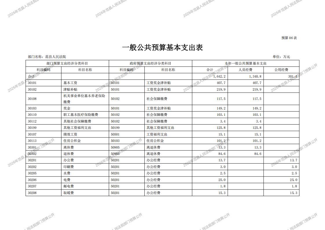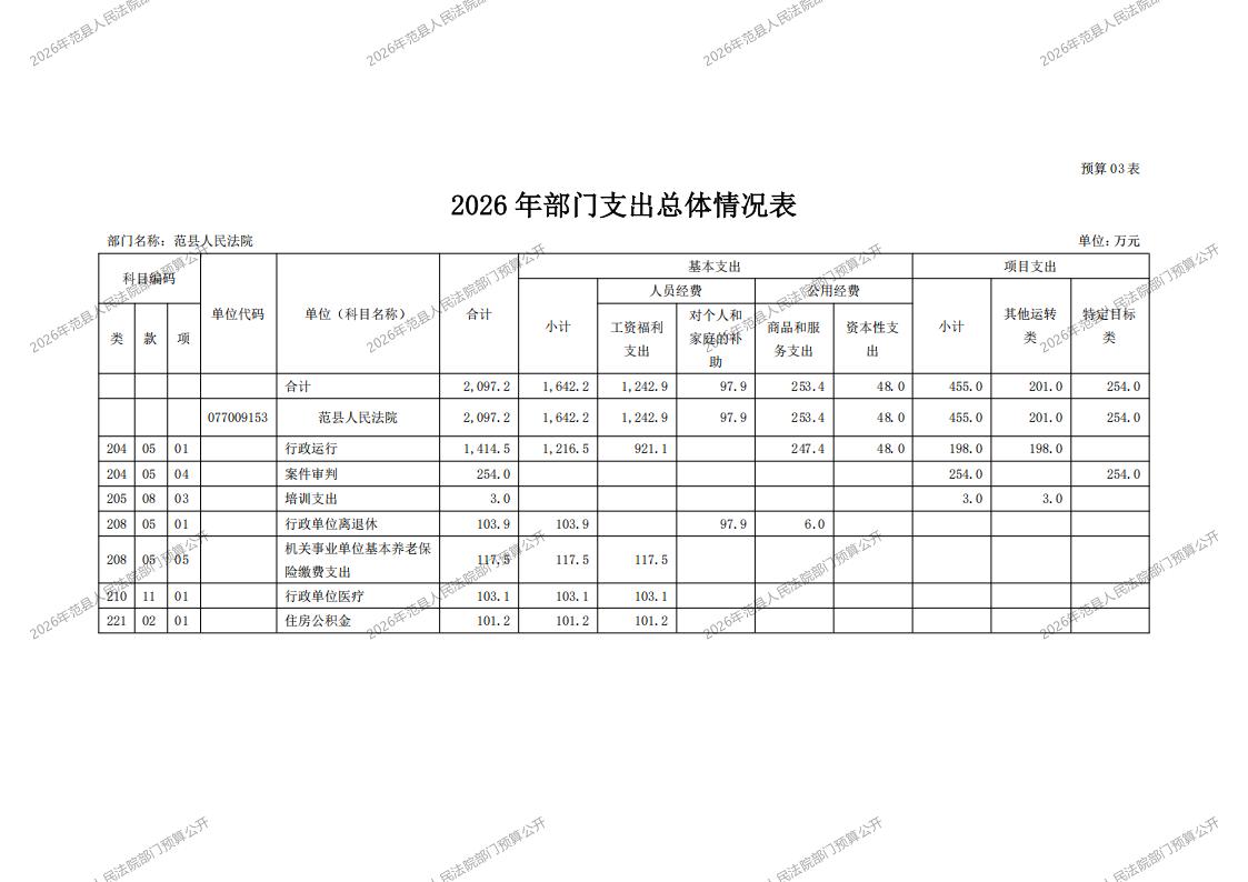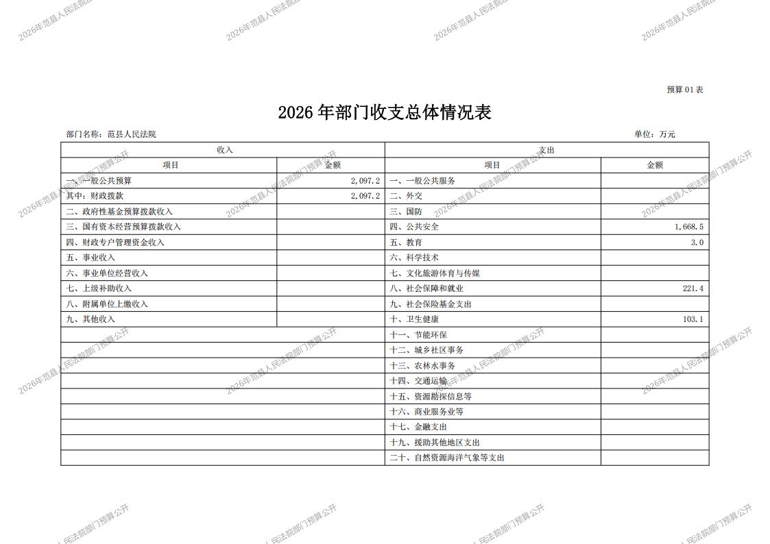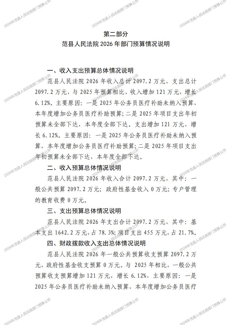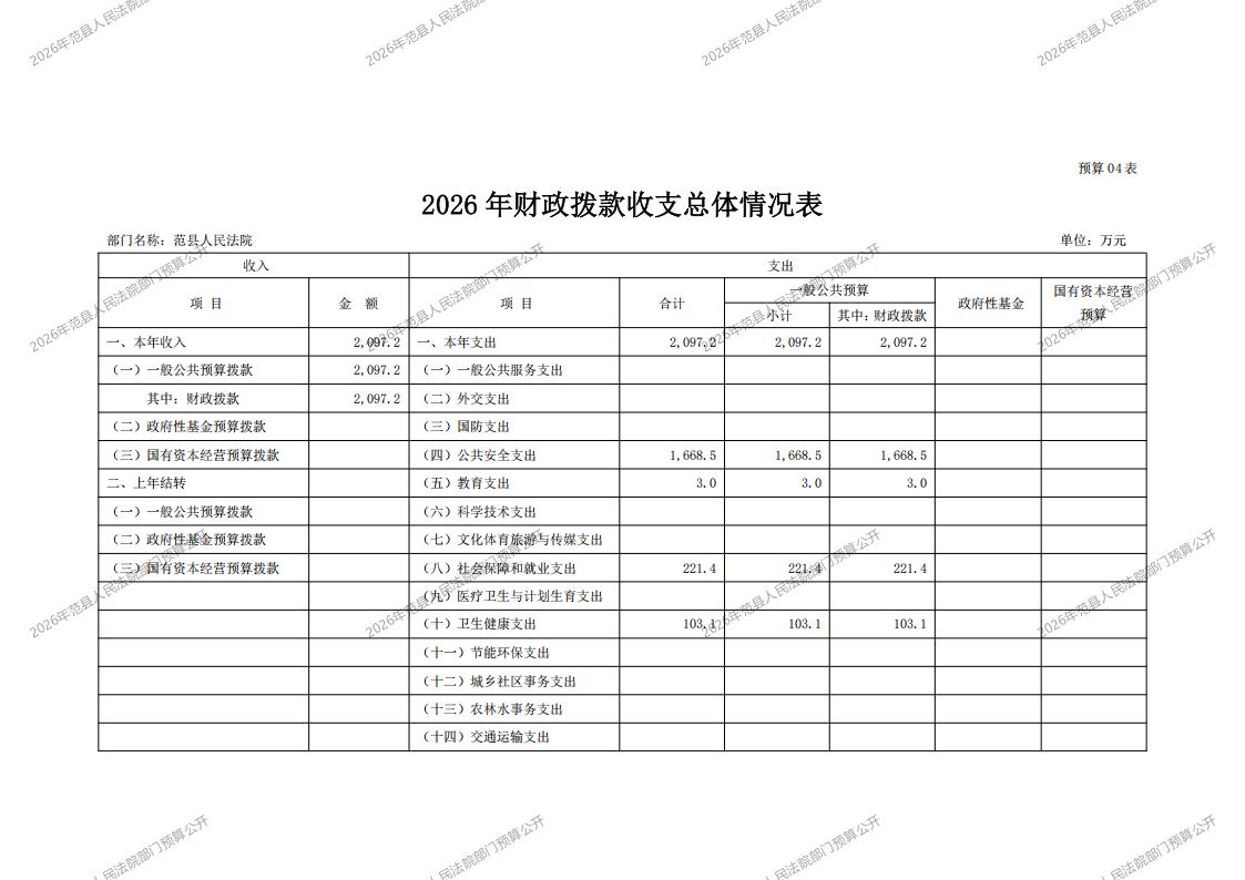 2026年范县人民法院部门预算公开